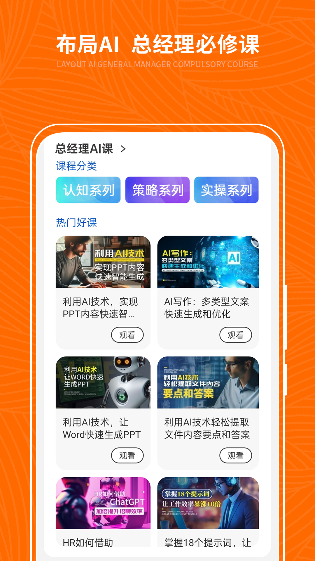 1、智能课程系统:基于用户职业背景与学习目标,AI算法会动态生成个性化学习计划,涵盖AI基础、管理变革、数据决策等模块,每门课程均配备视频讲解、案例库与测试题,确保知识吸收效率。