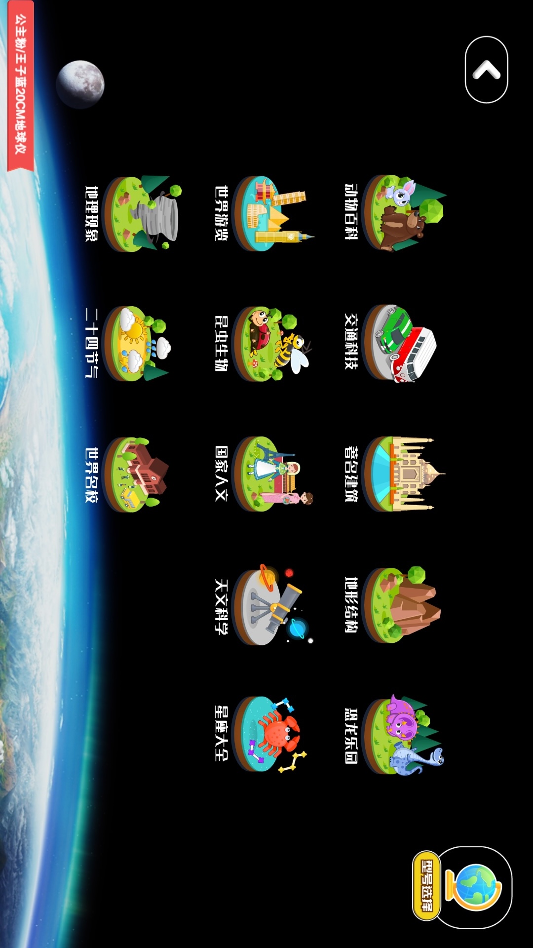 1、**多维度知识探索**:应用整合地理、生物、天文、历史四大领域知识,用户可通过点击地球表面触发3D模型展示。例如,扫描非洲板块可呈现狮子、长颈鹿等动物的3D动画,并语音讲解其栖息环境;点击中国区域则能查看长城、故宫等著名建筑的微缩模型,同步显示历史背景与文化特色。