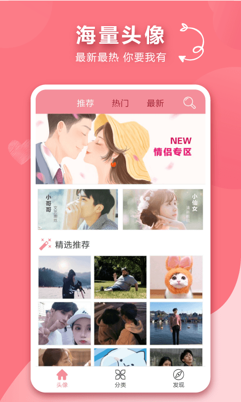 「情侣头像工坊」是一款专为情侣设计的创意社交APP,集头像设计、情感互动与个性化表达于一体。用户可通过海量模板库、AI智能生成及DIY工具,轻松定制专属情侣头像,同时支持动态头像、双人互动特效等创新玩法。平台还提供情感测试、纪念日提醒等贴心功能,帮助情侣记录甜蜜瞬间,打造独一无二的恋爱数字印记。无论是异地恋的仪式感营造,还是日常互动的趣味升级,这款APP都能成为情侣关系的“情感催化剂”。