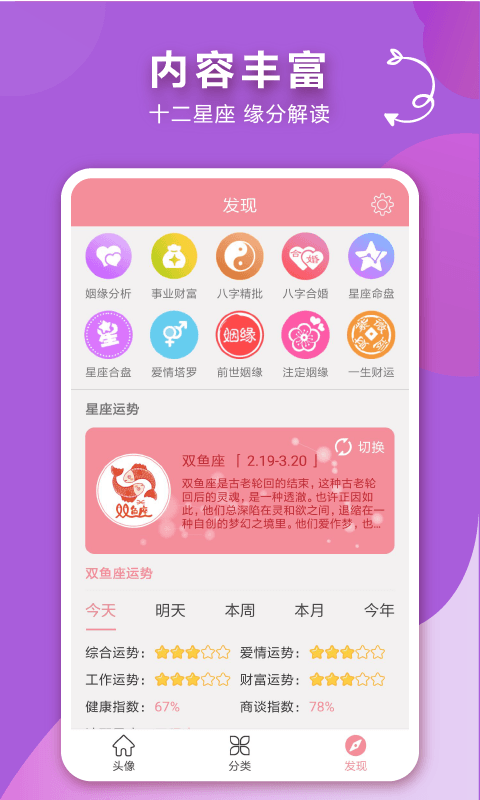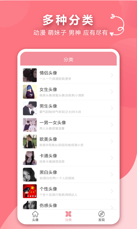 2、模板分类库:涵盖动漫、写实、手绘等20+风格,细分“节日限定”“星座配对”“职业主题”等场景,用户可一键套用或自由调整元素位置、颜色。