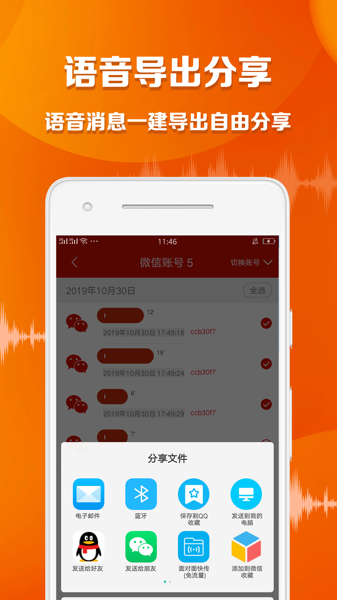 2、**跨平台分享与即时传输**:导出后的语音文件支持通过微信、QQ、邮件、蓝牙等多种渠道分享。例如,用户可将合并后的客户访谈录音直接发送至团队邮箱,或通过蓝牙传输至电脑进行进一步编辑,打破设备与平台间的传输壁垒,提升协作效率。