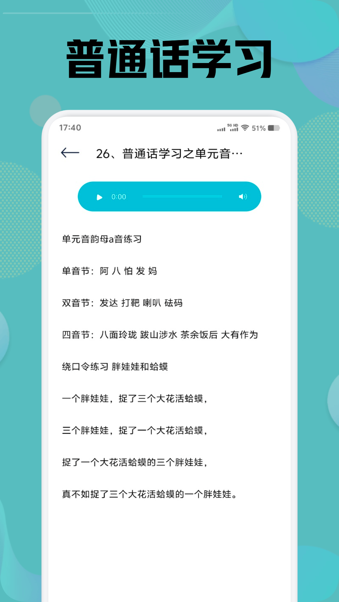 2、**AI智能纠音引擎**:通过语音识别技术,系统能精准捕捉用户发音中的声母、韵母、声调错误,并生成可视化报告。例如,南方用户常混淆的“n/l”音,系统会提供口型对比动画、慢速跟读练习及真人示范音频,帮助用户逐步纠正。数据显示,连续使用AI纠音功能30天的用户,发音准确率平均提升42%。