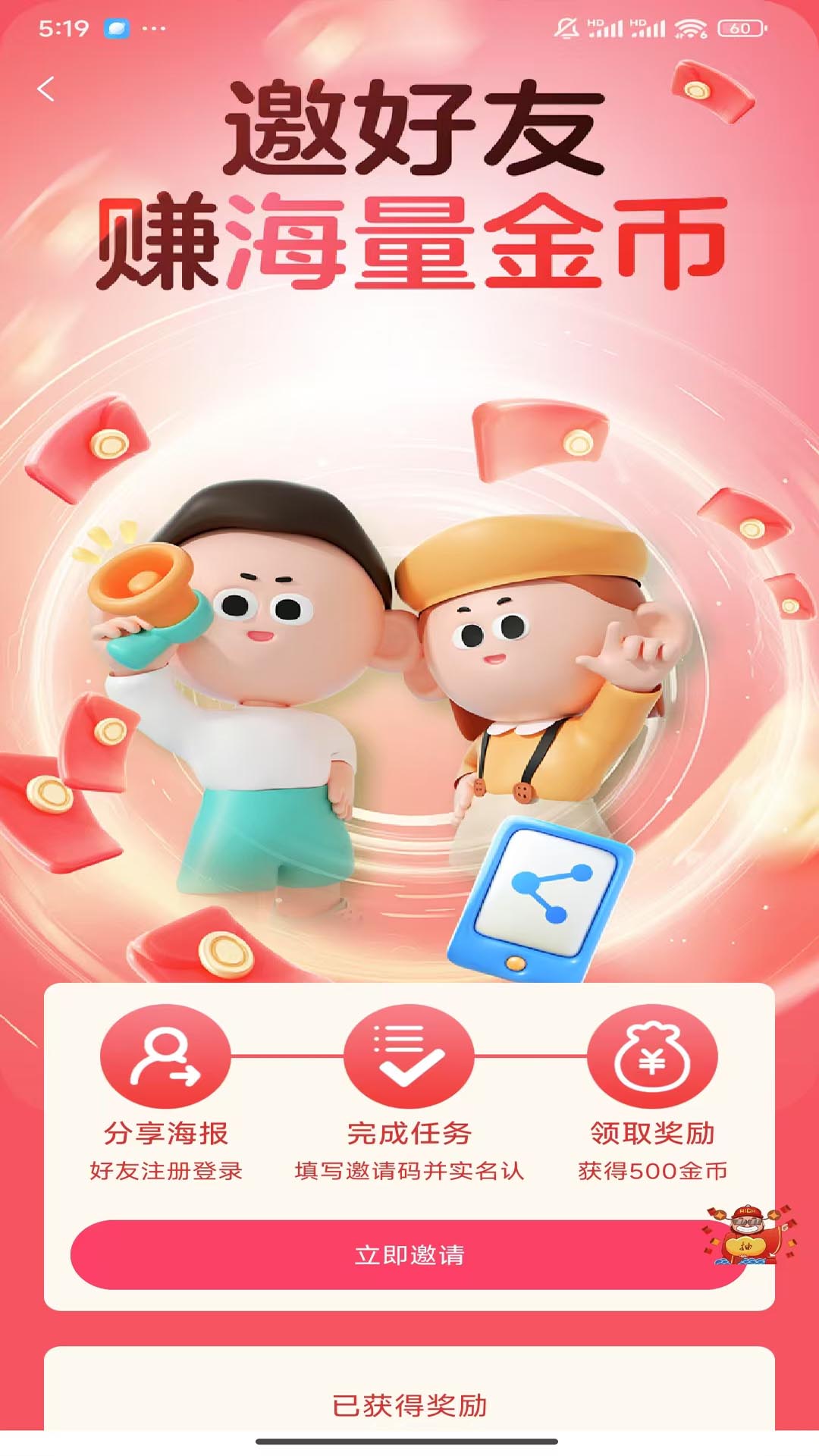 2、**社交裂变机制**:通过“邀请好友”功能实现用户快速增长。用户分享专属邀请码后,新用户注册即与邀请者建立绑定关系,双方均可获得额外金币奖励。这种“老带新”模式不仅降低获客成本,更通过社交关系链增强用户粘性,形成良性循环。