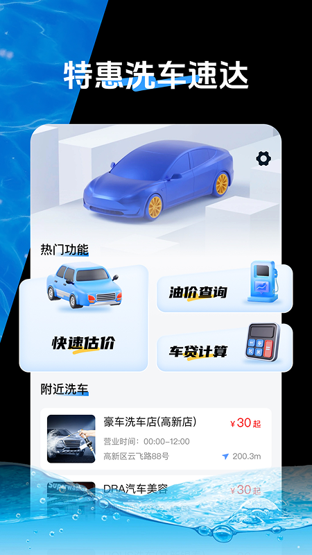 1、特价洗车助手的核心功能是实时聚合全国洗车门店的优惠信息,用户可通过地图定位快速查找周边3公里内的低价洗车点,并直接查看当前折扣力度与剩余名额。例如,工作日午间部分门店会推出“19.9元精洗”限时活动,APP会优先推送此类信息至用户首页。