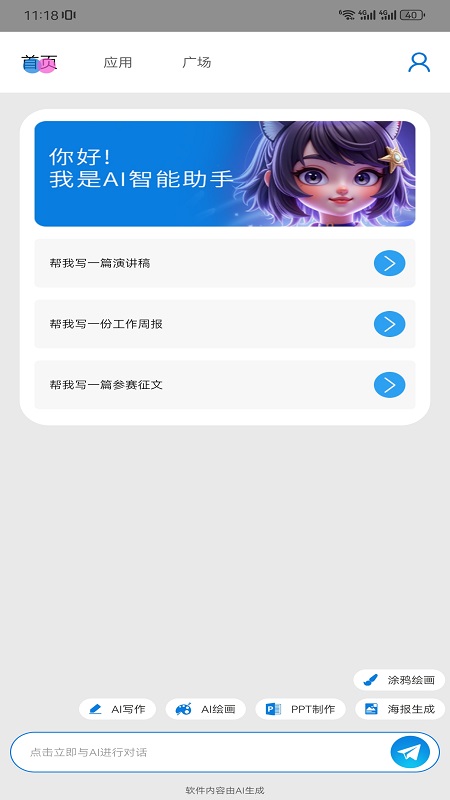 2、**创意内容生成**:支持一键生成朋友圈文案、视频脚本、商业计划书等文本内容。用户仅需输入关键词或主题,AI即可结合热点话题与语言风格偏好,输出结构清晰、逻辑连贯的文案。例如,输入“减肥计划”,AI可生成包含饮食建议、运动方案的个性化方案,并适配不同用户群体需求。