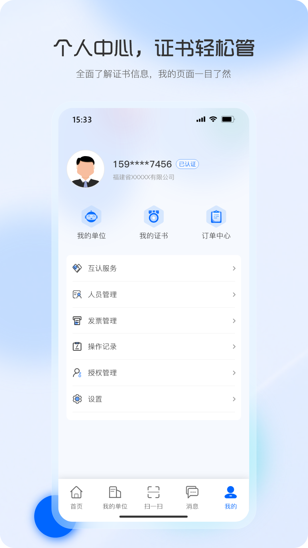 1、**全生命周期证书管理**:福易签提供数字证书的申请、下载、更新、吊销等全流程服务,采用国家密码管理局认可的SM2/SM3/SM4密码算法,确保证书安全合规。用户可通过APP一键完成证书操作,无需依赖实体UKEY,实现“无介质登录”与“跨平台签名”,全国范围内电子签章、加密解密无障碍。