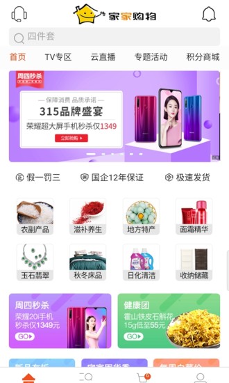 1、**全品类覆盖与精准分类**:家家购物APP涵盖家居清洁、数码配件、美妆个护、母婴用品等全场景商品,通过“首页推荐”“分类导航”“搜索发现”三大入口,用户可快速定位需求。例如,家居专区细分厨房用品、收纳工具等子类目,配合销量排行榜和用户评价,帮助用户高效决策。