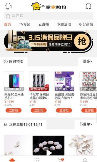 2、**视频直播与实时互动**:APP内置直播购物模块,主播通过实物演示、功能讲解和限时优惠,打造沉浸式购物体验。2021年4月优化云直播功能后,兼容最新操作系统,支持弹幕互动、一键下单,用户可在直播中领取专属优惠券,享受“边看边买”的便利。