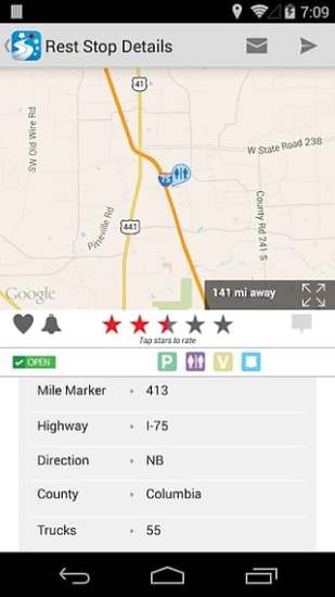 1、Rest Stops的核心功能之一是“智能路线规划”。用户输入出发地与目的地后,APP会结合实时路况与用户偏好(如优先选择加油站、餐饮店或卫生间),生成多条备选路线,并标注每个休息点的具体位置、服务类型及用户评分,帮助用户高效规划行程。