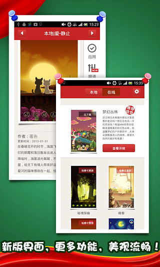 1、四季主题轮换:根据季节变化自动更新壁纸库,春季主打樱花、桃花,夏季呈现荷塘、星空,秋季展示银杏、枫叶,冬季则有雪景、极光,让手机界面始终与自然同频。