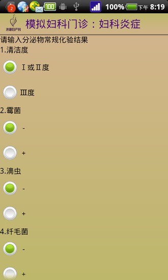 “模拟妇科门诊:妇科炎症”APP是一款专注于女性健康,特别是妇科炎症领域的教育与模拟应用。它通过模拟真实的妇科门诊环境,为用户提供专业的妇科炎症知识讲解、症状自查、以及预防与治疗建议。这款APP旨在帮助女性用户更好地了解自身健康状况,增强自我保健意识,同时为那些可能面临妇科炎症困扰的用户提供科学、实用的应对策略。无论是对于妇科知识的好奇者,还是实际需要帮助的患者,这款APP都是一个不可多得的好帮手。