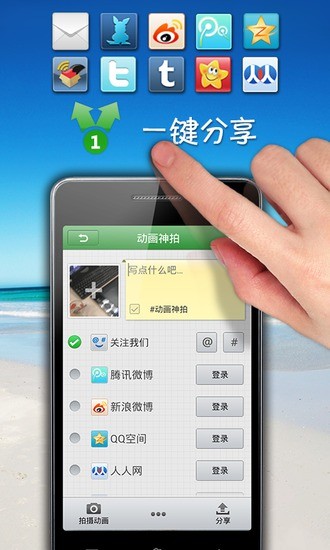 3、**一键分享与播放**:生成GIF后,用户可直接同步至新浪微博、腾讯微博、人人网等平台,并支持导出至微信朋友圈。此外,应用内置本地GIF播放器,可解决手机中静态GIF无法播放的问题,用户通过“右击-用动画神拍打开”即可预览并二次编辑。