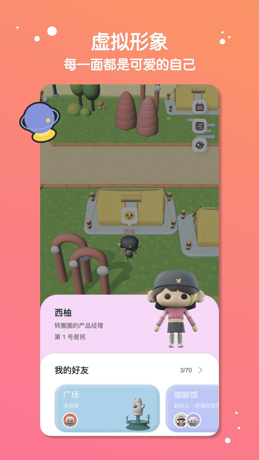 2、**动态社区与共建机制**:用户可发布生活动态、分享兴趣内容,并通过投票参与社区建设。例如,居民可提议新增建筑或活动形式,平台会采纳高人气建议,让用户成为虚拟世界的共同创作者。