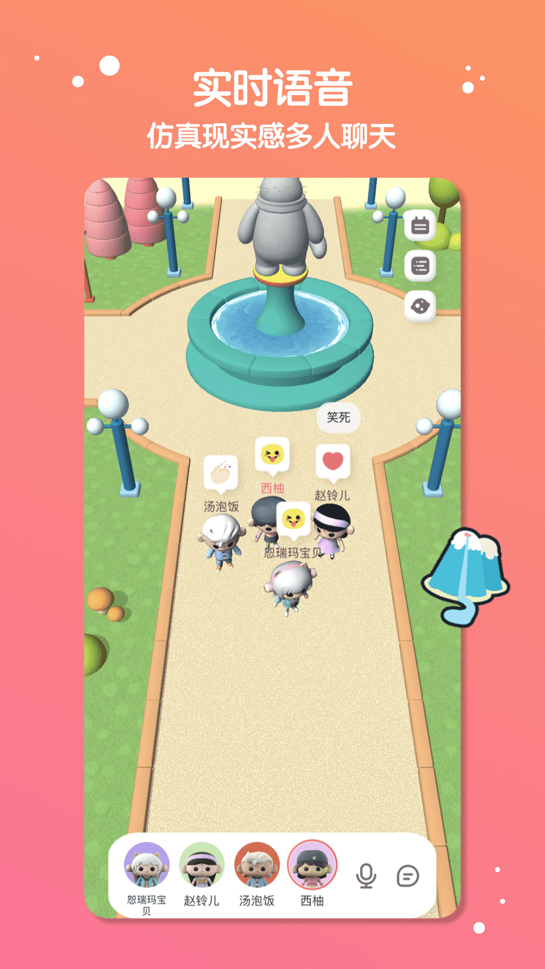 2、**场景化社交触发**:平台通过猫猫喷泉、冰淇淋雪山等标志性场景设计,创造偶遇机会。例如,用户在喷泉旁休息时可能触发随机对话任务,完成互动可解锁限定装饰,增加社交趣味性。
