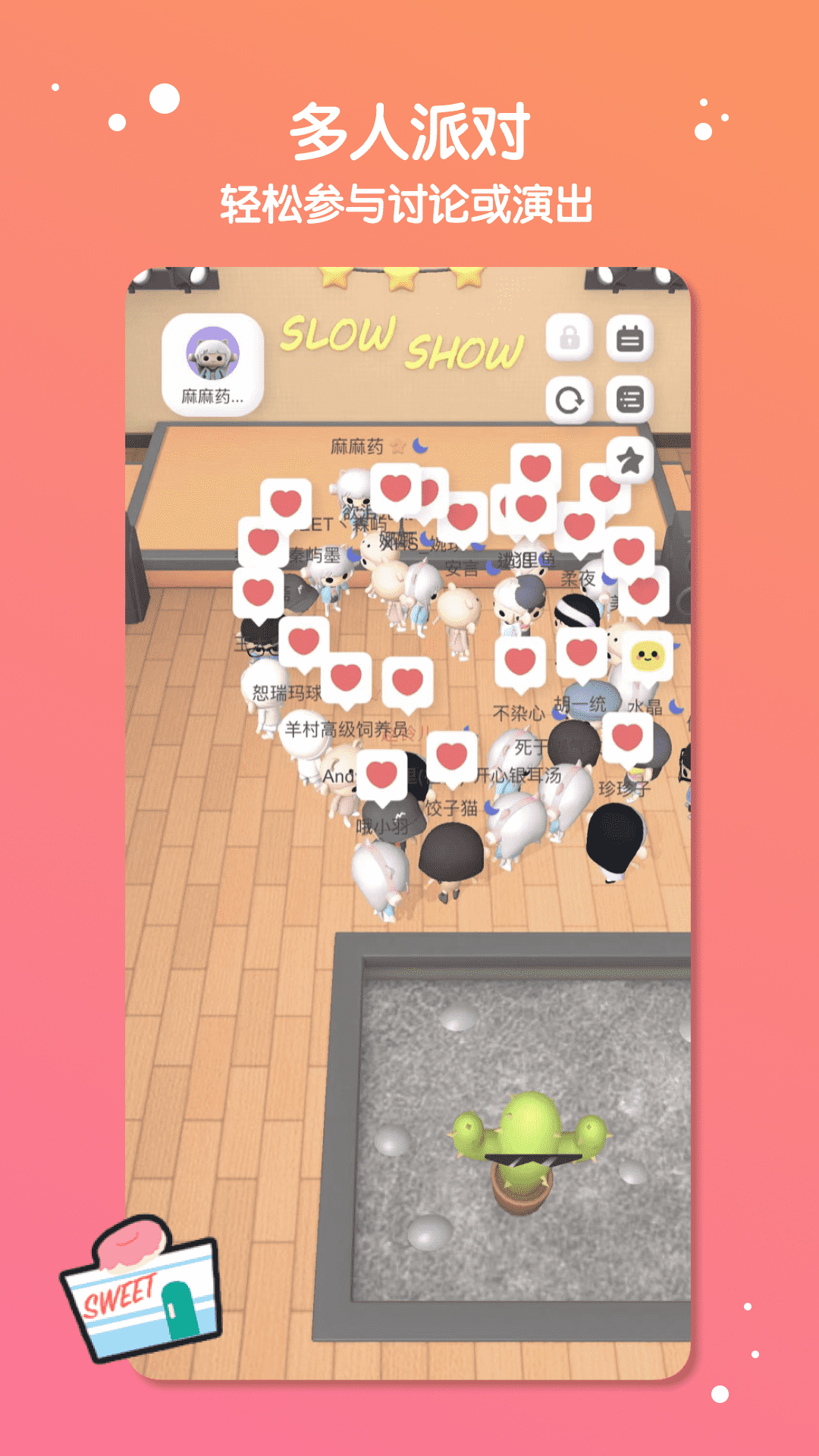1、**实时语音互动**:缓缓星球首创近距离语音功能,用户靠近其他角色即可触发流畅对话,模拟现实见面场景。咖啡厅的公共麦克风支持多人话题分享与LiveShow,用户可随时加入演出或讨论,打破传统文字交流的隔阂。