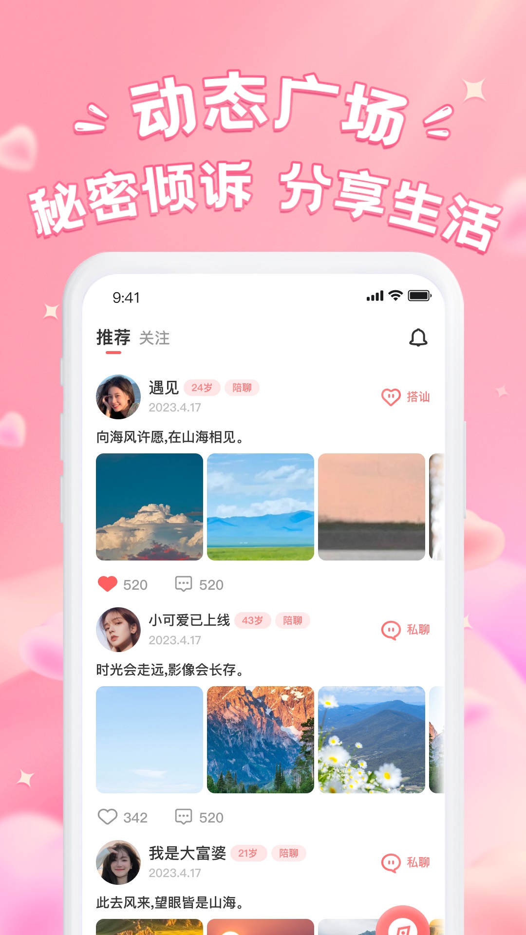 1、“附近动态”是APP的核心功能之一。用户打开定位后,系统会以地图形式展示周边3公里内的活跃用户,并标注其兴趣标签(如“健身达人”“电影迷”),点击头像即可直接发起聊天,无需等待对方通过好友申请,极大降低了社交门槛。