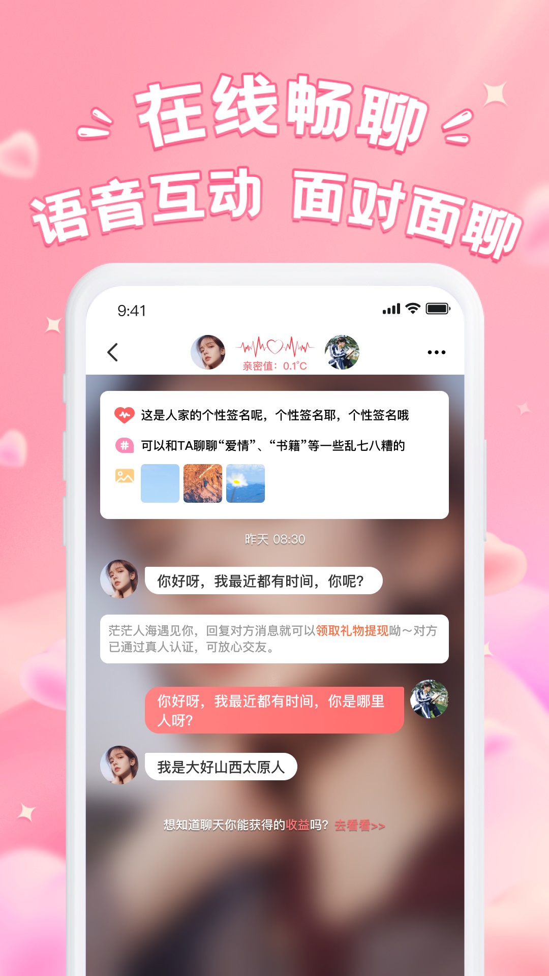 2、“隐私保护”机制完善。用户可选择隐藏真实姓名、头像,仅展示兴趣标签和虚拟昵称,且聊天内容采用端到端加密技术,确保对话不被第三方获取。此外,用户可随时屏蔽或举报不当行为,保障社交环境的安全。