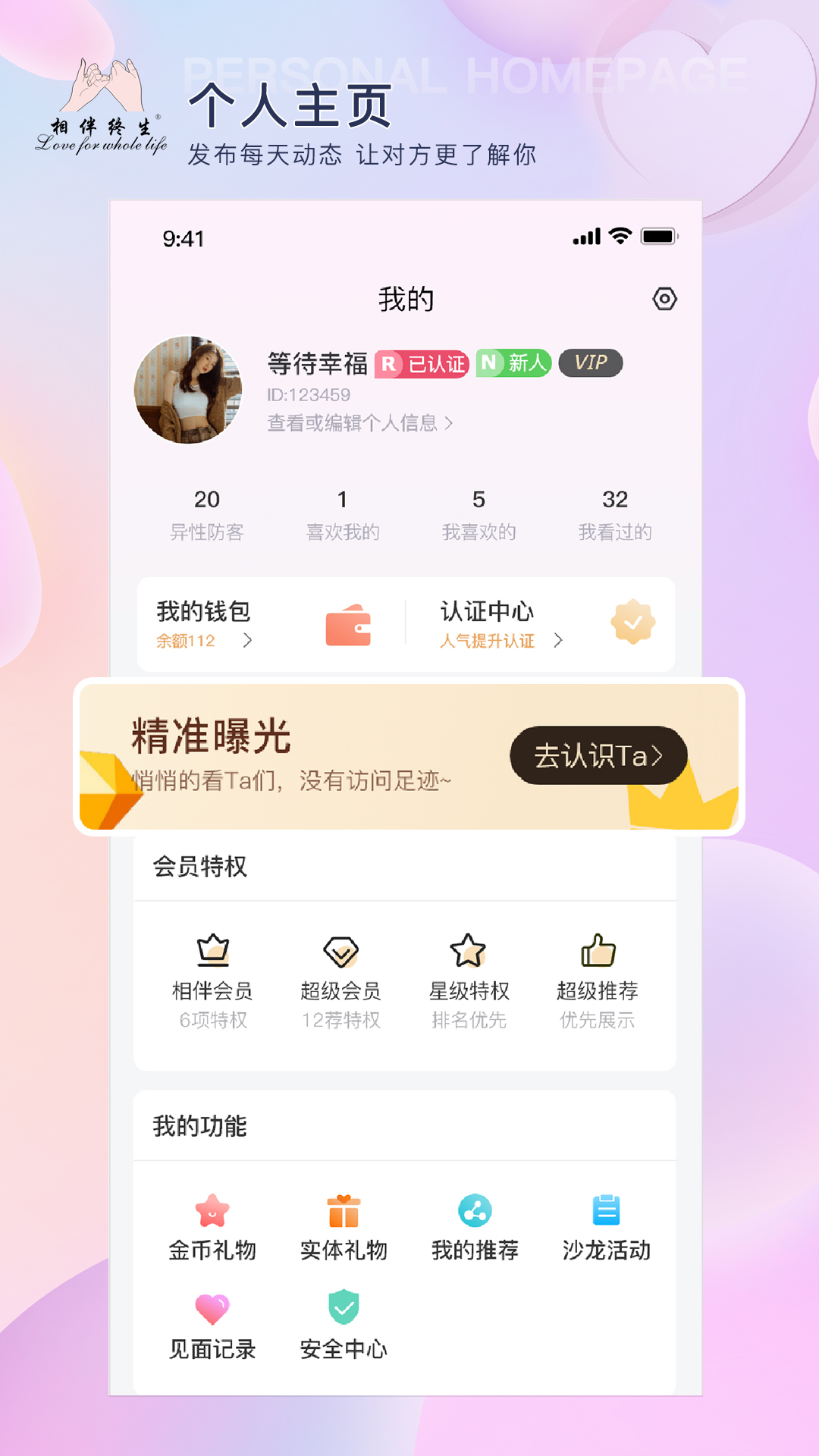“相伴终生”APP是一款以情感陪伴与终身成长为核心设计的综合性社交应用。它突破传统社交软件的单一模式,将情感互动、知识共享与人生规划深度融合,为用户打造一个既能记录生活轨迹、又能结识同频伙伴的温暖平台。无论是寻找人生导师、记录成长日记,还是参与兴趣社群,用户都能在这里找到属于自己的“终身陪伴者”。其界面设计简洁优雅,功能模块清晰,支持多设备同步,让陪伴不受时空限制,真正实现“一生相伴”的愿景。
