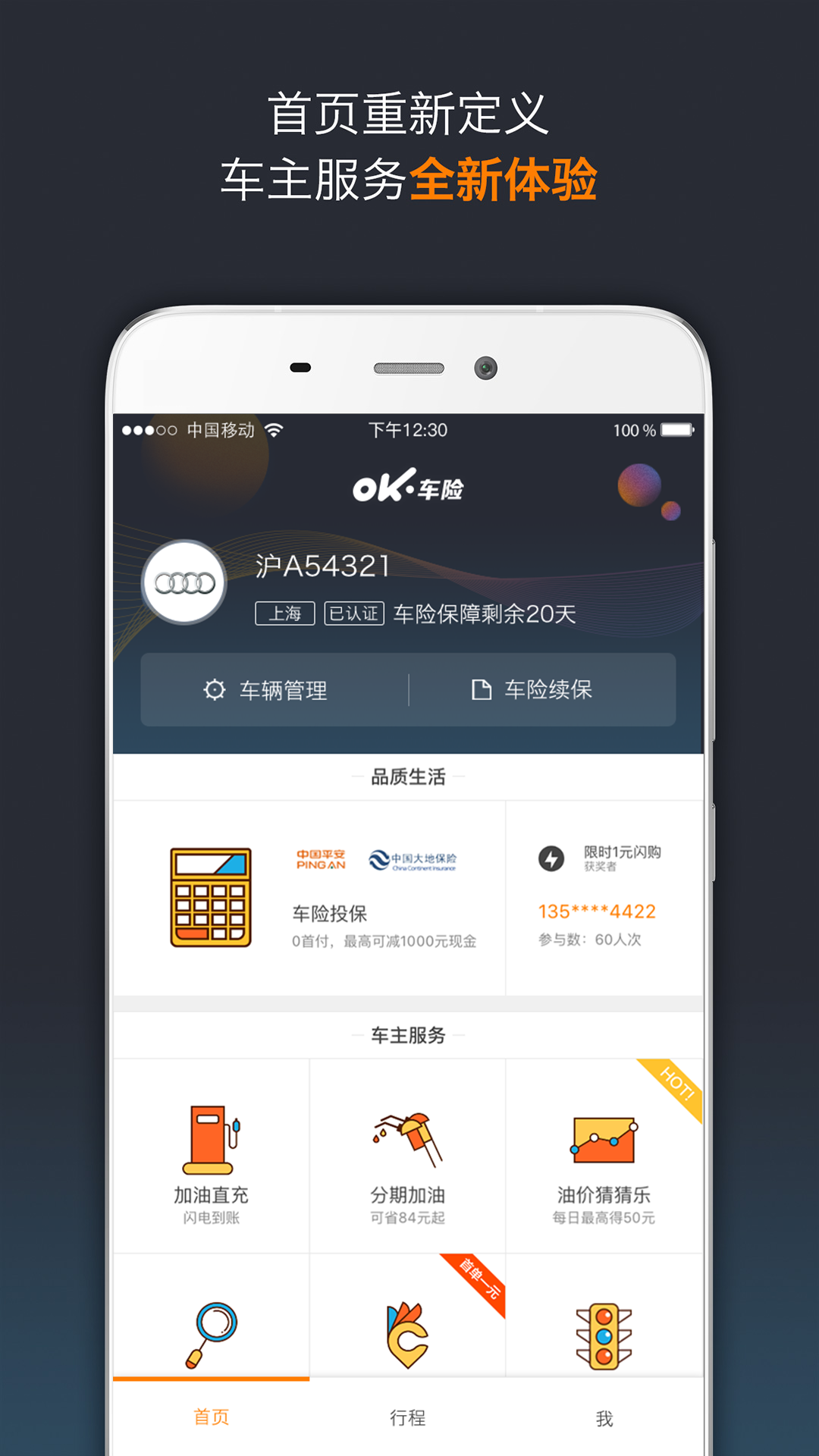 OK车险APP是由上海保橙网络科技有限公司推出的综合性车险服务平台,自2014年上线以来,以“人人争做好车主、安全舒心车生活”为核心理念,构建了覆盖车险投保、理赔、违章处理、加油优惠、二手车评估、汽车借贷等全场景的车主服务体系。通过手机车联网技术(OKDrive SDK)实现驾驶行为数据采集,结合“OK驾值”保险分数模型,为用户提供个性化车险定价与安全驾驶指导。目前支持全国90%以上保险公司实时报价,覆盖iOS与Android系统,用户可通过支付宝、货到付款等方式完成交易,累计服务车主超千万人次。