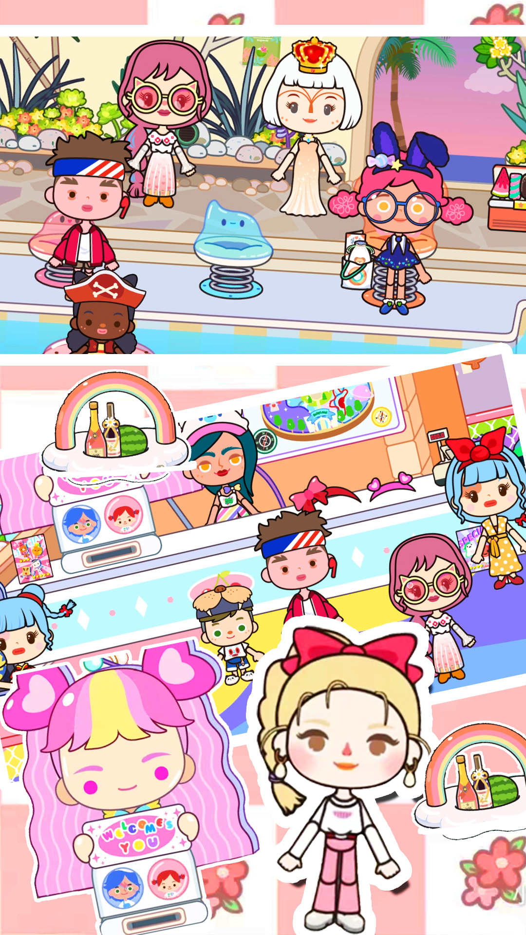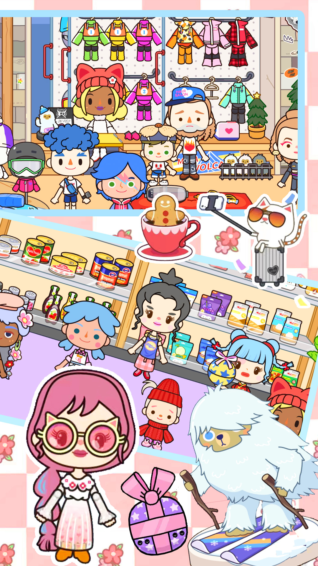 1、**场景交互系统**:游戏内设雪山滑雪场、水上过山车、居酒屋等120余个可交互场景。玩家可在购物中心试穿潮流服饰,在游乐园参与旋转木马DIY面具活动,或于海滩区搭建沙堡、寻找海盗船宝藏,每个场景均隐藏动态事件触发点。