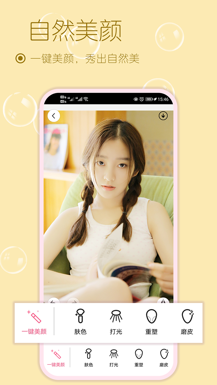 2、零门槛操作:界面简洁直观,新手可通过“一键美颜+自动贴纸”模式快速出片,进阶用户可深入调节参数,满足从普通用户到摄影爱好者的不同需求。