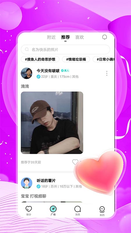3、**动态广场与隐私保护**:用户可发布图文、视频动态,展示生活点滴。平台采用“阅后即焚”功能保护隐私,同时通过实名认证+人工审核双重机制,过滤虚假内容。例如,某用户分享旅行视频后,收到200+点赞,并成功约见3位同城好友。