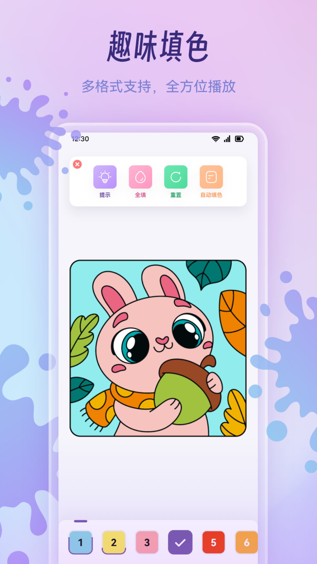 2、除了基础填色,APP还提供“渐变工具”和“纹理填充”功能。用户可自定义颜色过渡方向,或选择木纹、水彩等纹理效果,让画面更具层次感。对于复杂图案,分层创作功能允许用户分区域处理,提升创作效率。