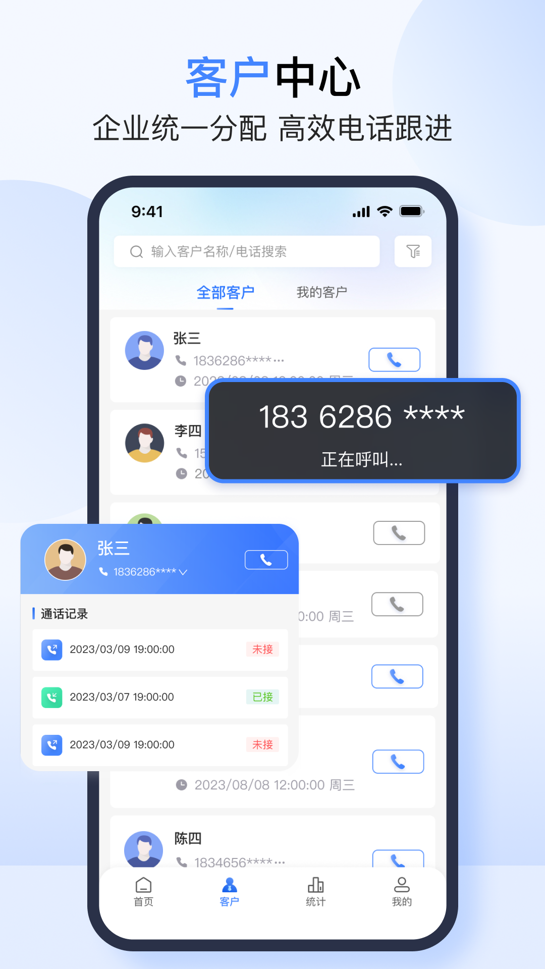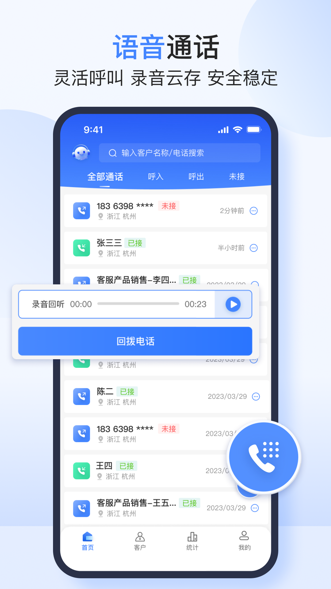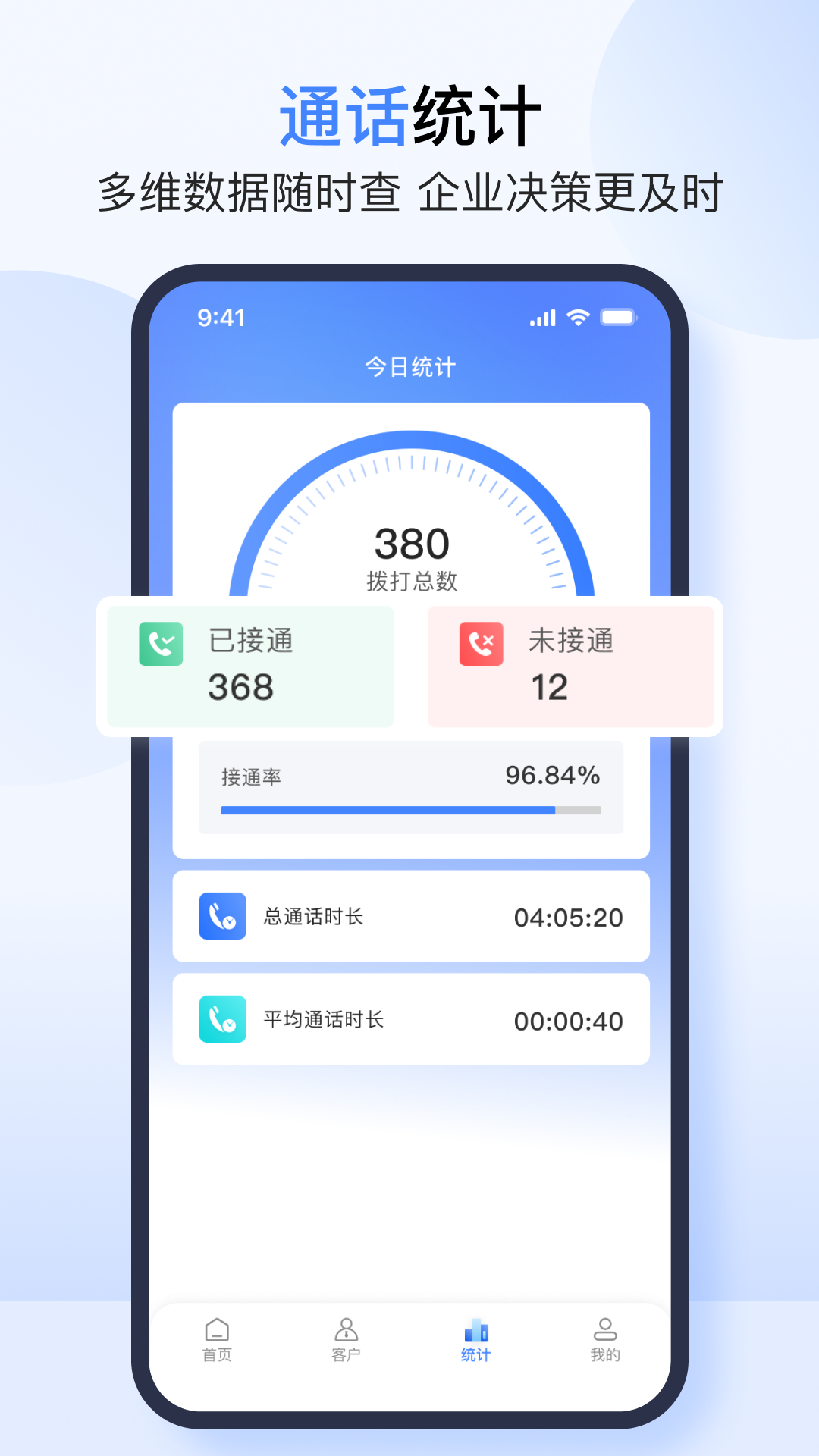 2、**智能数据报表系统**:软件内置多维度数据报表工具,可自动生成通话记录、员工工作量、客户分析等可视化图表。例如,管理者可通过“今日通话统计”功能快速查看团队通话时长、接通率等关键指标,结合客户画像分析功能,精准定位高价值客户群体,为销售策略调整提供数据支撑。
