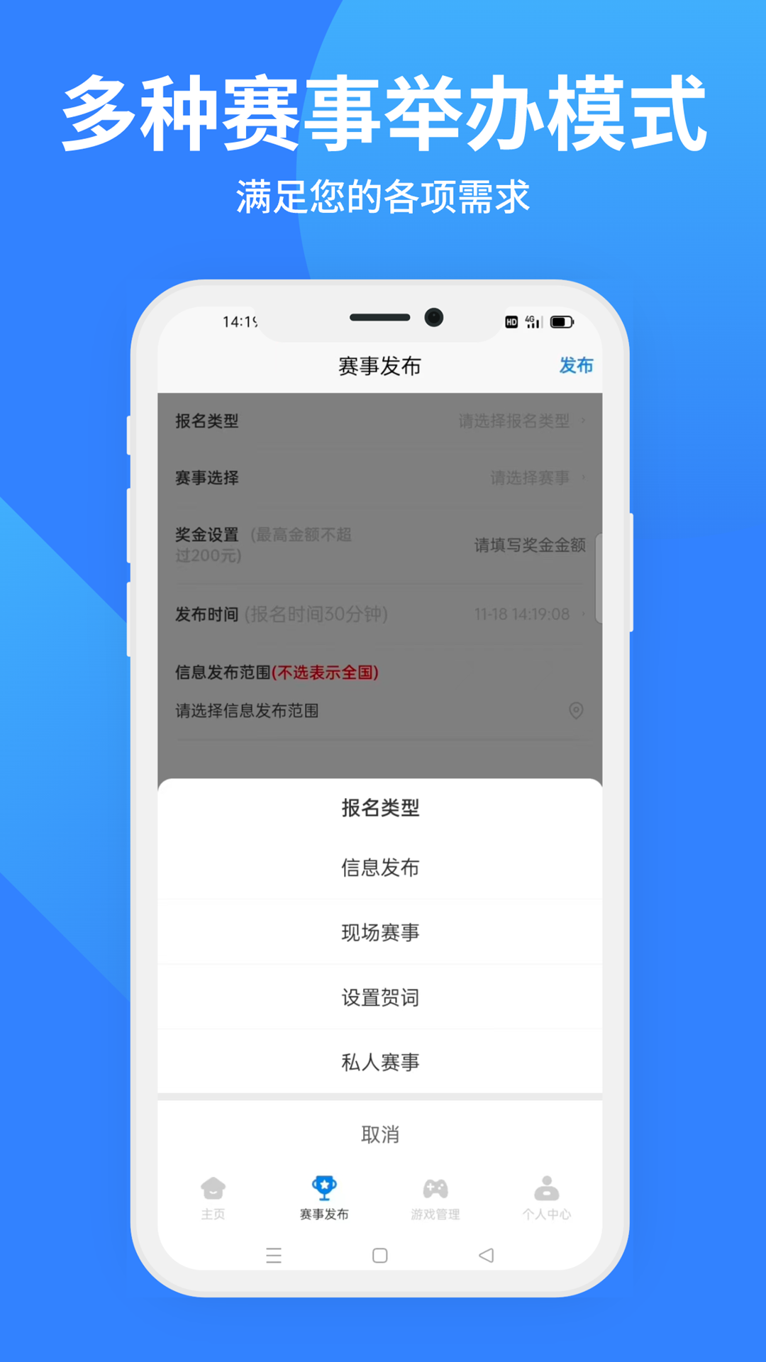 2、**赛事自主发布与管理**:用户可通过APP发布本地赛事,设置报名条件、奖金池、赛程规则等参数。例如,某篮球俱乐部可通过“赛事发布”功能创建3v3街头赛,设定报名费50元/人、冠军奖金2000元,并利用系统生成的电子海报进行宣传,实现赛事从策划到执行的闭环管理。