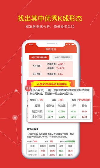 1、**个性化学习路径**:针对新手用户,APP设计“K线学院”模块,通过动画演示单根K线(如大阳线、十字星)的含义,以及多根K线组合(如乌云盖顶、曙光初现)的实战应用。例如,在讲解“射击之星”形态时,系统会结合历史案例展示该形态出现在股价高位时,如何预示后续下跌风险。