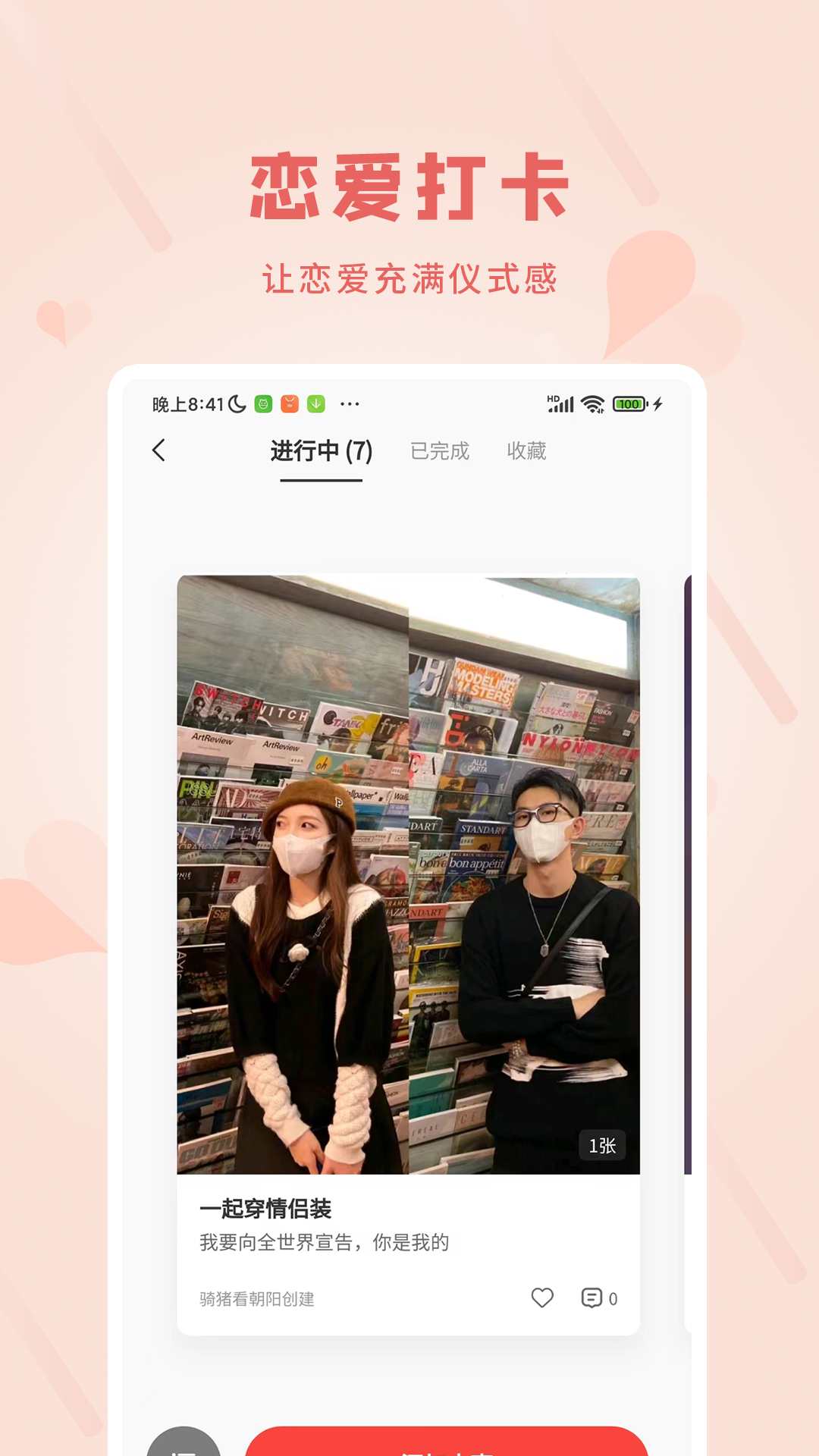 3、社区化社交延伸:用户可加入“恋爱星球”社区,参与话题讨论(如“异地恋如何维持”)、查看其他情侣的手帐案例,甚至通过“匹配功能”找到恋爱阶段相似的用户交流经验,形成温暖的互助氛围。