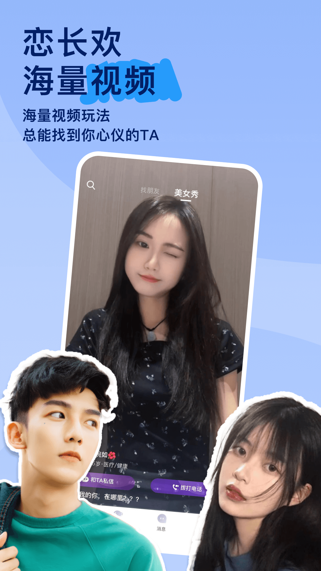 《恋长欢》是一款面向年轻群体的实名制交友相亲平台,由湖北梦君网络科技有限公司于2023年12月推出,主打“真实、高效、普惠”的社交理念。平台通过身份证实名认证与真人活体检测双保险机制,确保用户身份真实性,同时提供文字、语音、视频三大核心交互方式,满足用户从线上破冰到深度沟通的全流程需求。截至2024年5月,平台持续优化语音连麦稳定性与视频画质清晰度,并增设“相亲角”专区,用户可自主筛选学历、职业、兴趣等20余项标签,快速定位理想对象。其独特的“月老牵线”功能,通过AI算法分析用户行为数据,每日推送3位高度匹配对象,帮助用户突破传统社交的随机性局限。