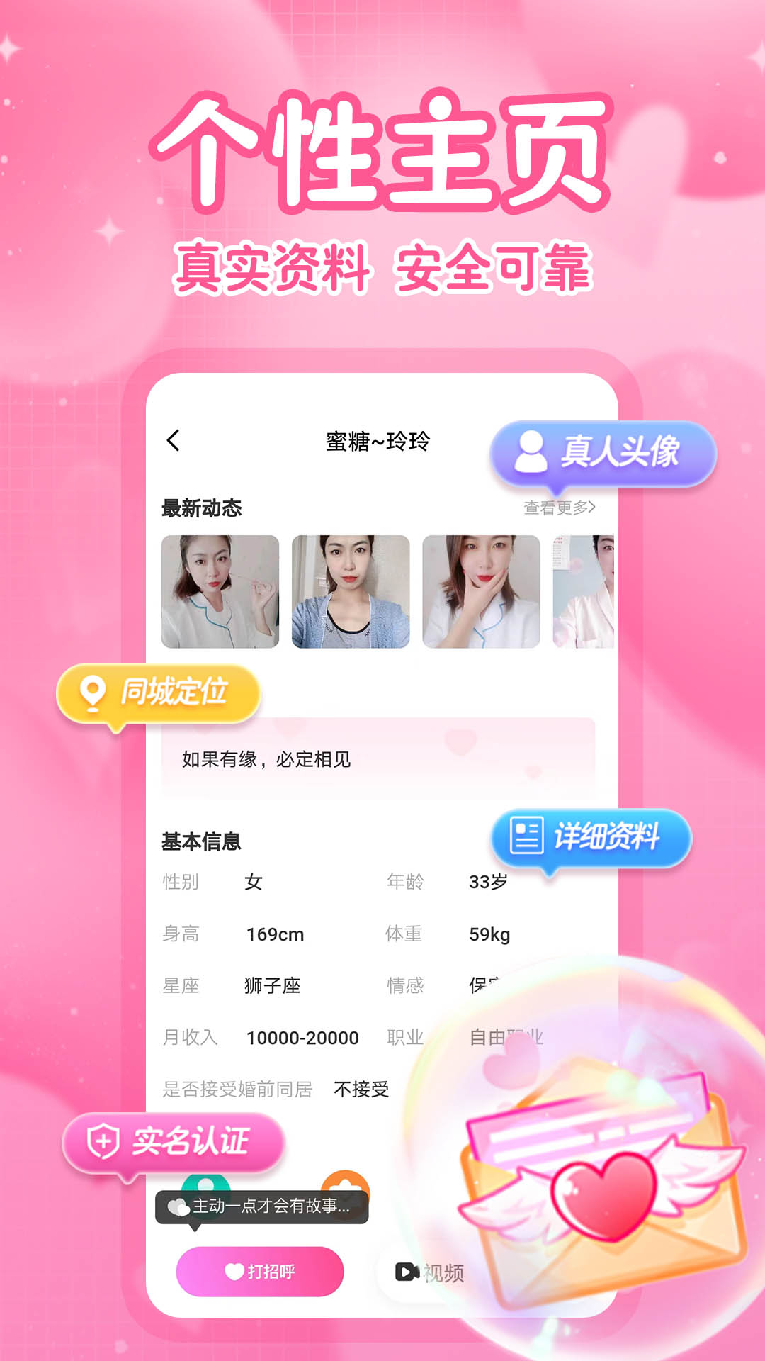 3、语音视频畅聊:支持一对一或多人语音、视频通话,无需切换平台即可完成深度交流,尤其适合异地用户或想快速建立信任的场景。