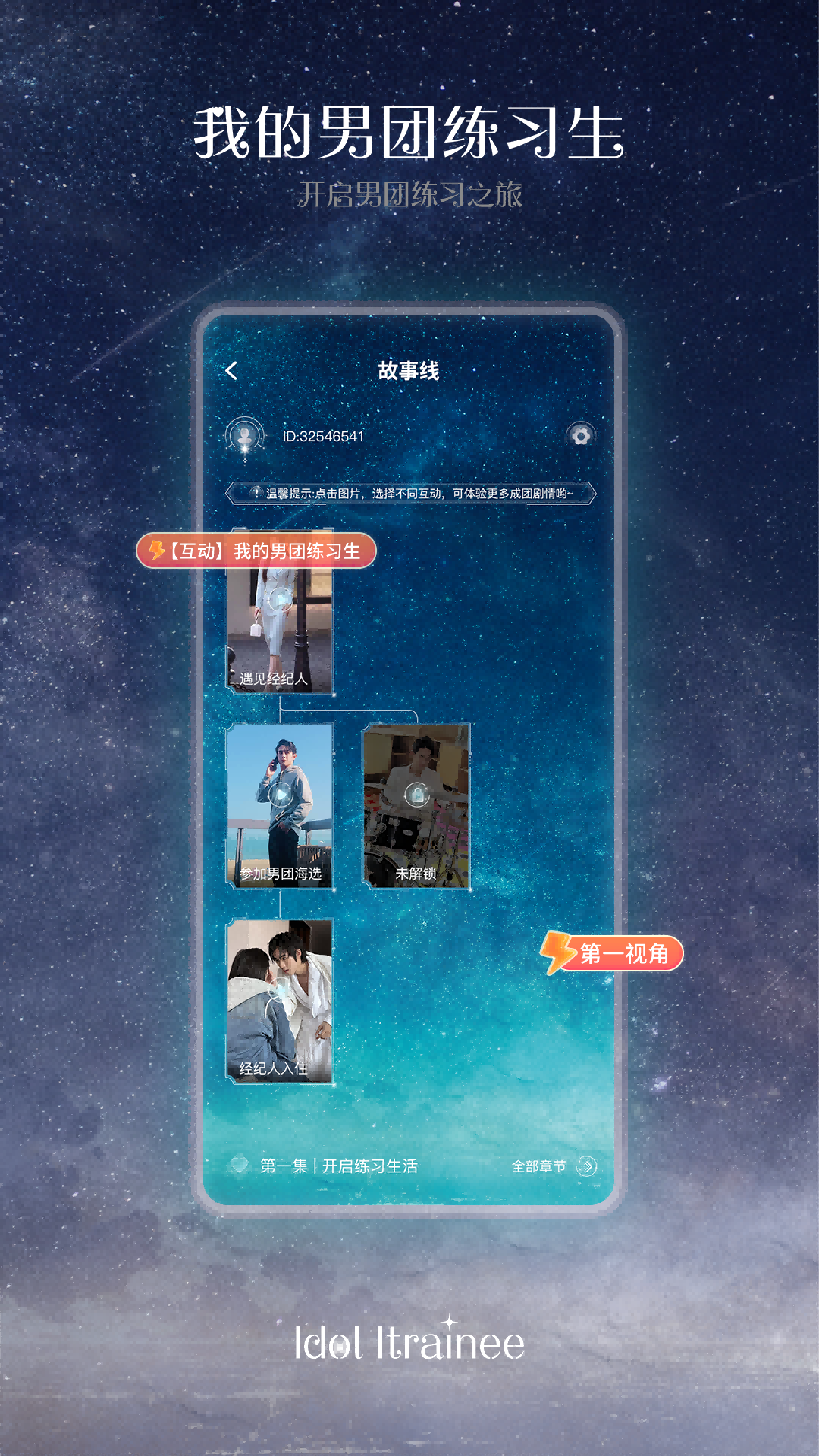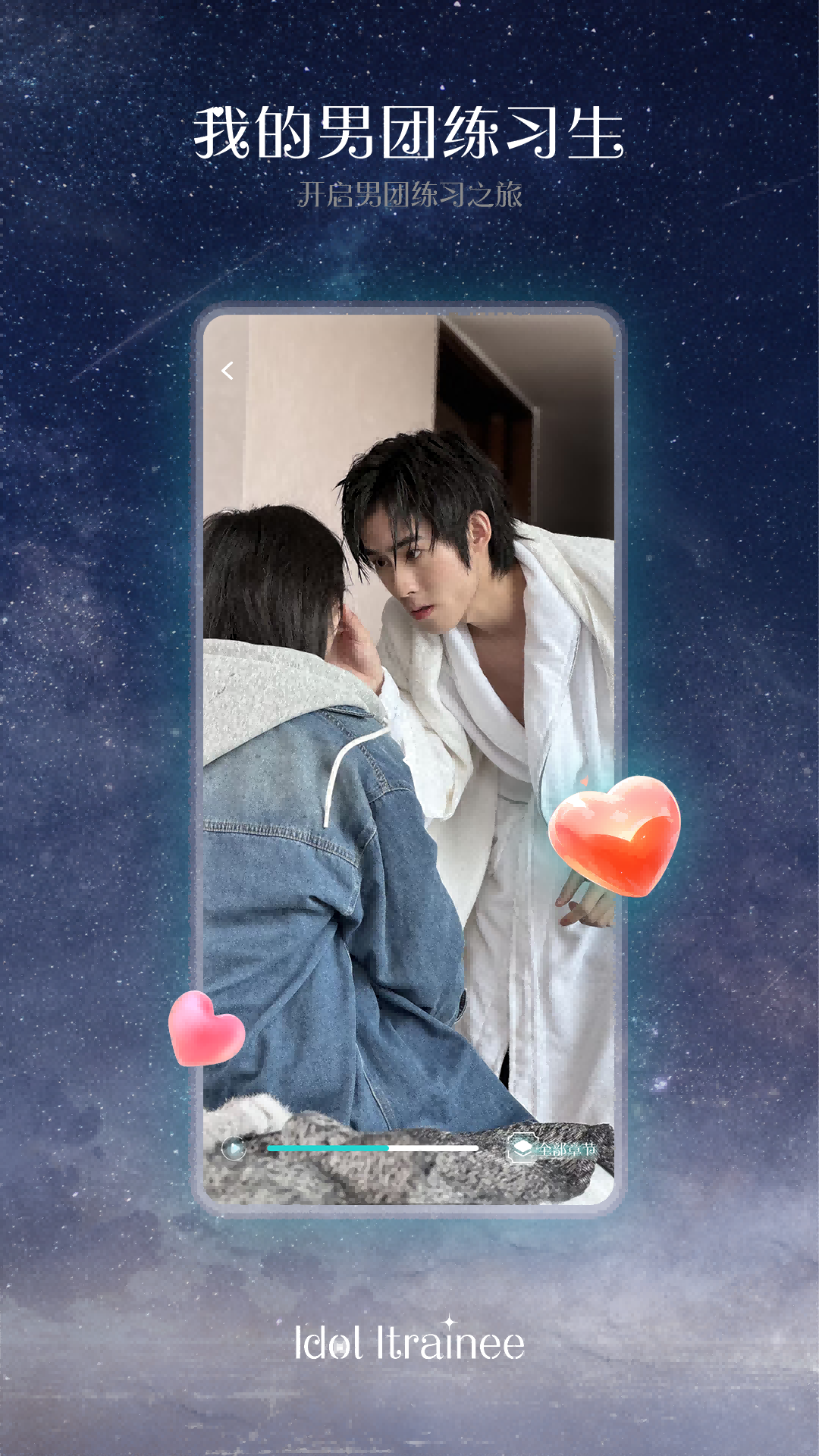 《我的男团练习生》是一款以偶像养成与互动体验为核心的沉浸式模拟APP。用户将化身“制作人”,从百位风格各异的虚拟练习生中选拔成员,组建专属男团。通过训练课程、舞台表演、粉丝互动等环节,提升团队人气与实力,最终冲击顶流偶像地位。APP融合了角色扮演、策略经营与社交互动元素,不仅还原了真实的偶像培养流程,更通过3D建模、动态捕捉技术呈现高精度角色形象与表演效果,让用户沉浸式感受从素人到巨星的蜕变之旅。