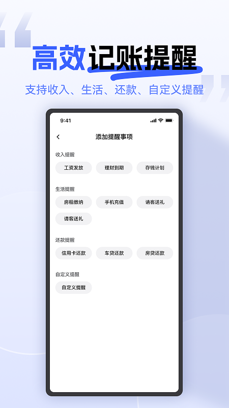 3、**跨平台无缝衔接**:支持Android系统全功能使用,iOS用户可通过微信小程序实现基础提醒服务。例如,Android用户可在应用内直接完成收支记录、还款提醒设置;iOS用户则能通过小程序接收提醒通知,并跳转至银行APP完成还款操作,兼顾不同用户群体需求。