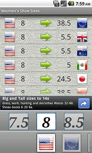 2、离线使用便捷:核心尺码转换功能无需网络,用户可在海外旅行时提前下载所需国家的尺码表,即使身处无信号环境也能快速查询,解决“临时购物无网络”的痛点。