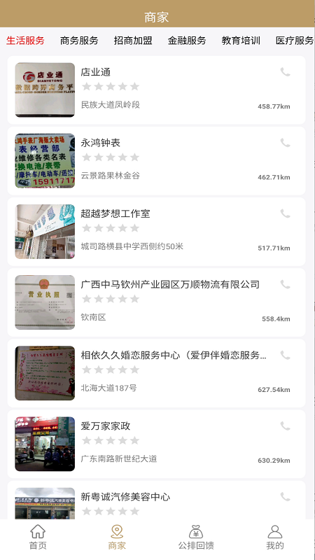 1、**全场景商铺搜索**:嘉雷丝内置高精度定位系统,用户输入关键词后,可快速筛选出3公里范围内的目标商铺,如输入“汽修”即可显示附近所有汽车服务门店,并标注距离、评分及联系电话。平台还支持按行业分类浏览,用户可一键切换至教育机构、金融服务等板块,满足多样化需求。