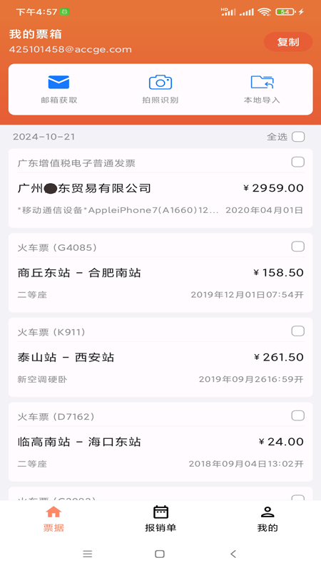 1、“报销易”的核心功能之一是智能发票识别。它利用先进的OCR技术,能够快速准确地识别发票上的关键信息,如发票号码、金额、日期等,大大减少了人工录入的错误和时间成本。
