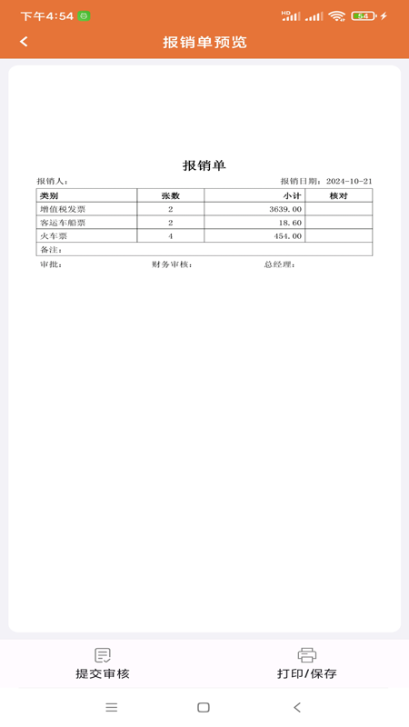 2、该APP还具备强大的报销单生成能力。用户可以根据识别出的发票信息,一键生成规范的报销单,支持自定义报销项目和分类,满足不同企业的报销需求。