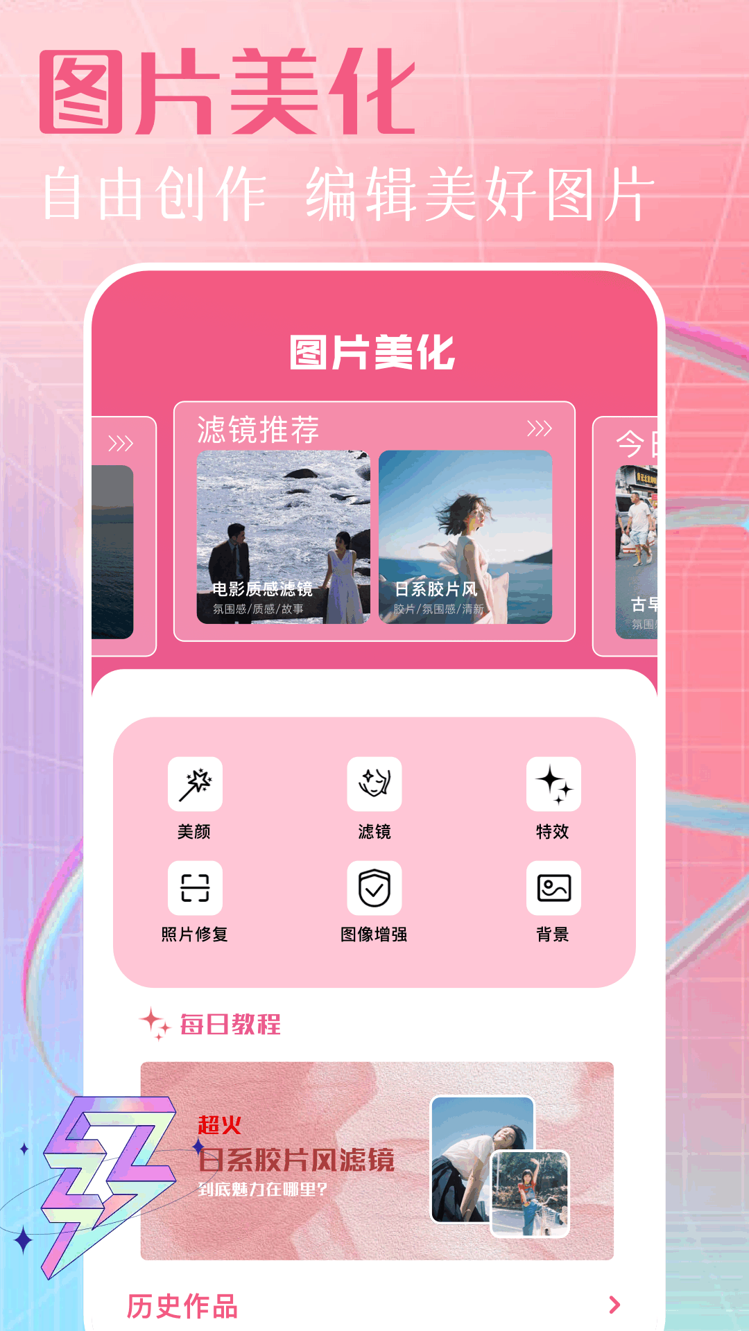 2、**高级创意功能**:软件内置AI抠图、背景替换、动态特效等进阶工具。用户可通过“自由编辑”功能涂抹需保留的区域,AI自动识别边缘并精准抠图;或使用“双重曝光”工具叠加多张图片,创作超现实主义作品。此外,其视频编辑模块支持添加背景音乐、调整播放速度,并内置故障特效、复古滤镜等潮流元素。