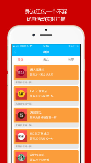 1、**红包雷达技术**:搜哒的“红包雷达”功能可实时扫描周边商家派发的电子红包,用户无需主动搜索即可接收优惠。例如,在广州天河城逛街时,APP会自动提醒附近奶茶店的“第二杯半价”红包,用户可直接领取使用。