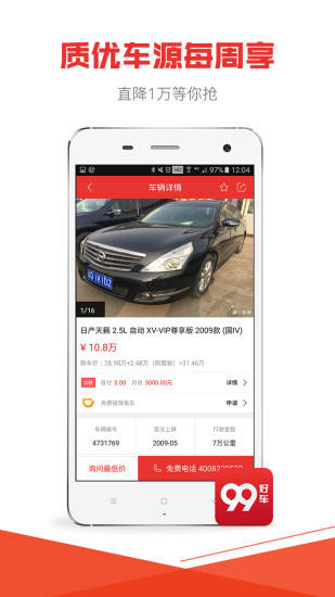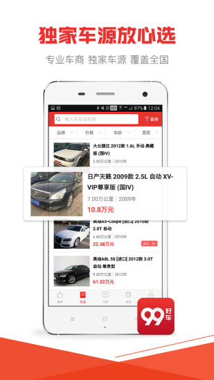 1、**智能选车与精准匹配**:99好车APP集成智能搜索功能,用户可通过品牌、车型、价格区间等关键词快速定位目标车辆。平台独创“车源推荐”算法,基于用户浏览历史和偏好,主动推送符合需求的车型,例如用户频繁查看德系中型车,系统会优先展示同级别、同年份的奥迪A4L、宝马3系等车源,提升选车效率。
