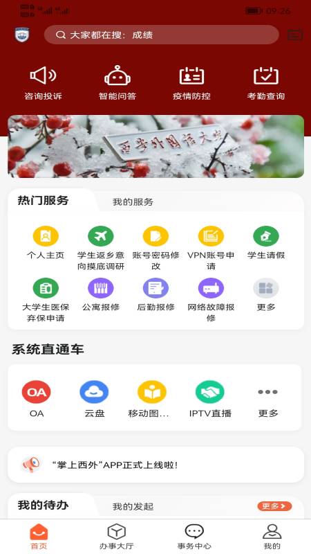 2、**融合型事务中心**:2025年优化的"事务中心"模块集成OA办公、财务报账、后勤报修等7大系统消息,用户可在同一界面跟踪请假审批进度、查看奖学金申请状态,避免多平台切换。