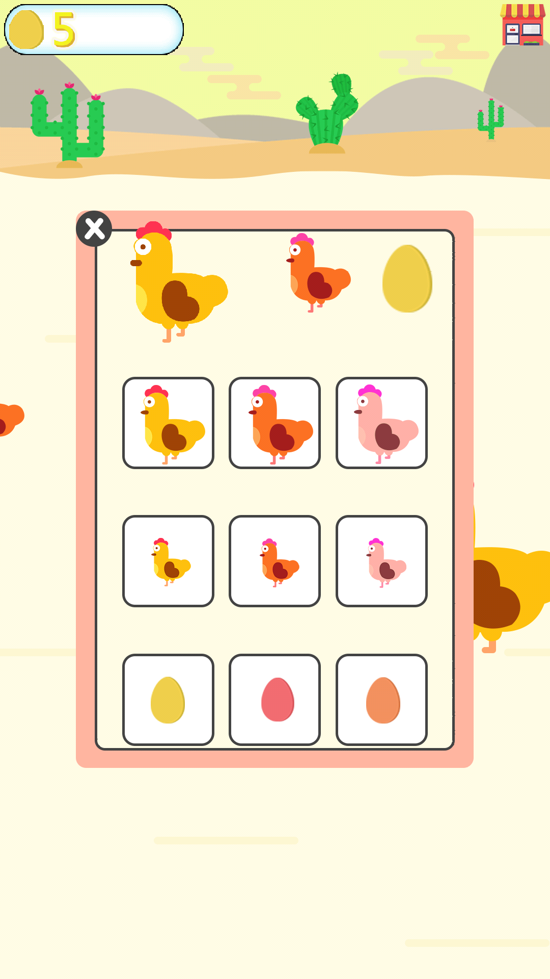 1、基础下蛋玩法:玩家需通过点击屏幕中的小鸡,帮助其完成“下蛋”动作。下蛋后,鸡蛋会进入孵化流程,孩子需观察孵化进度条,培养耐心与时间管理能力。成功孵化后,可解锁不同品种的小鸡,激发收集欲望。