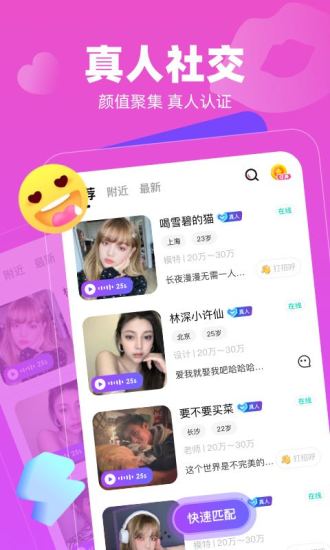 1、「声遇」的特色之一是“声音匹配”。系统会根据用户的声音特征(如音调、语速、情感表达)和兴趣标签,智能推荐可能合拍的用户。这种匹配方式突破了传统社交APP“看脸”的局限,让用户更专注于内在的契合度,增加结识灵魂伴侣的概率。