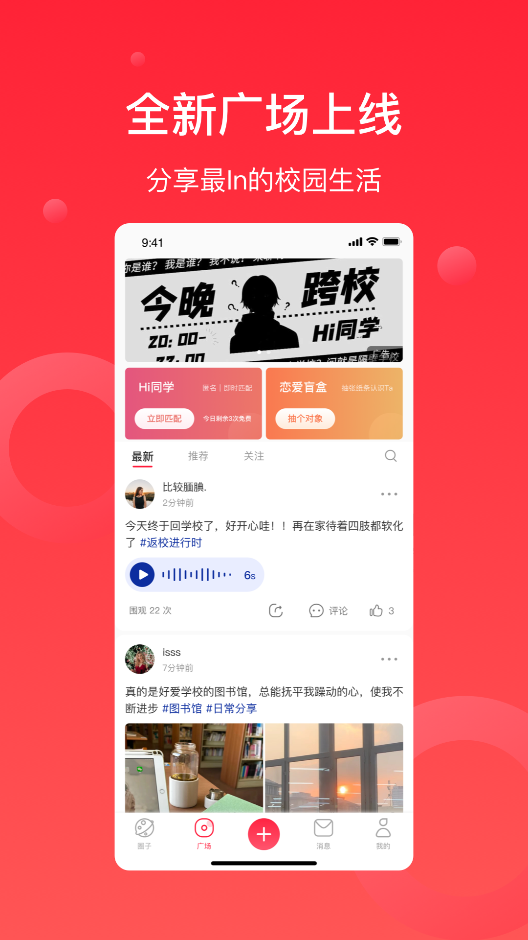 2、社交互动功能以“同校圈”为核心,学生可按专业、兴趣或年级加入社群,发布动态、提问求助或组织线下活动。APP内置匿名树洞功能,为学生提供安全倾诉空间,促进心理健康与情感交流。
