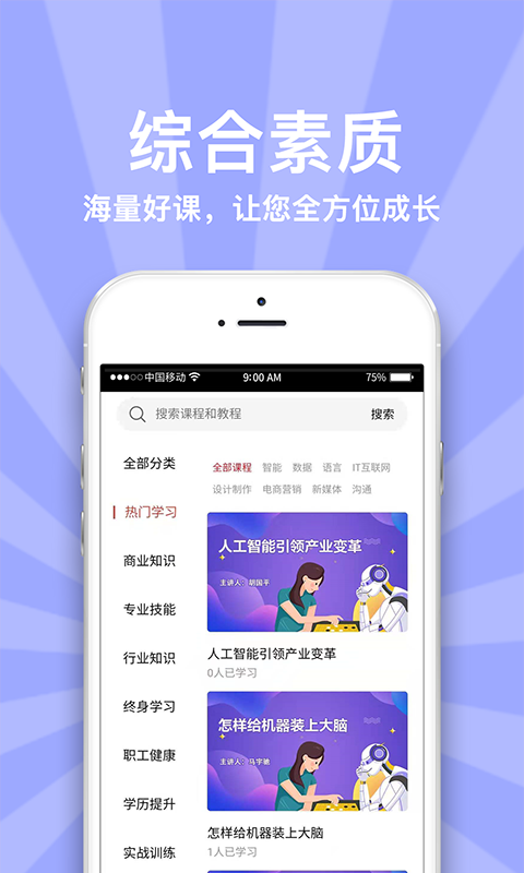 1、课程资源丰富:APP汇聚了各行各业的专业课程,涵盖管理、技术、营销、语言等多个领域,满足不同岗位职工的学习需求。