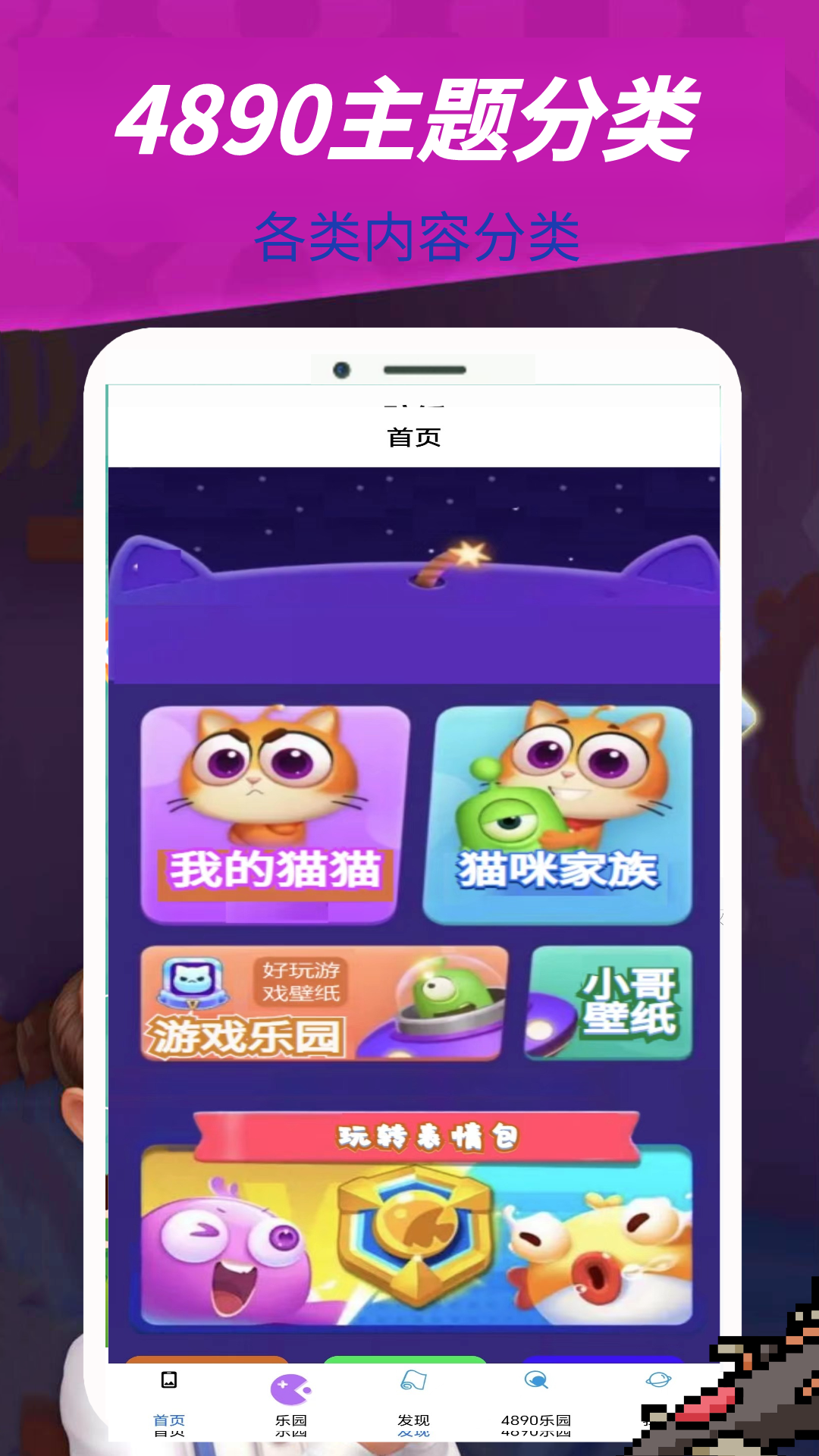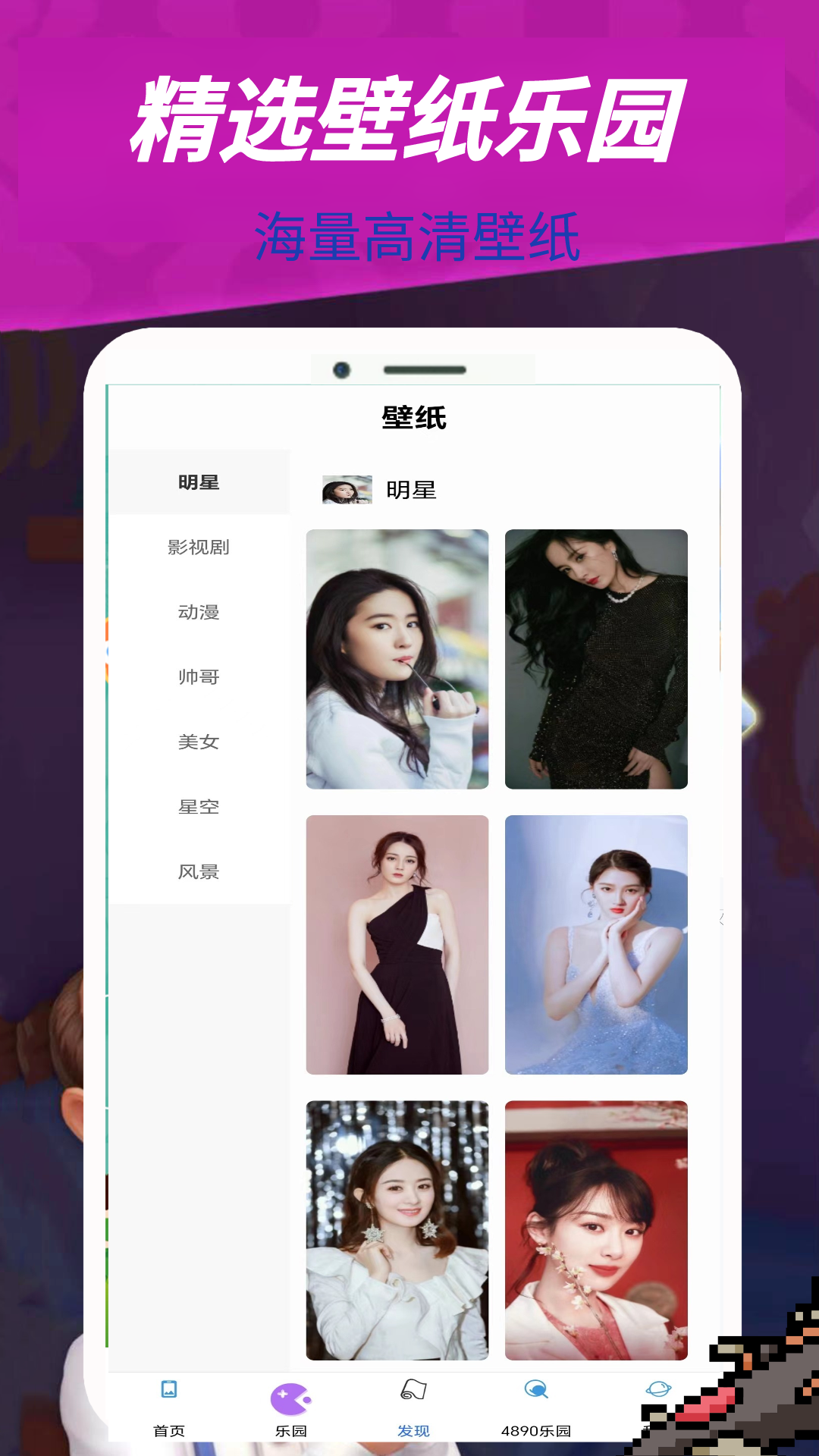 4890乐园是一款集高清壁纸资源、智能搜索与个性化定制功能于一体的手机美化应用。作为南昌萌奥科技有限公司推出的热门软件,其核心定位是为用户提供无水印、超高清的壁纸素材库,涵盖自然风景、动漫游戏、明星偶像、萌宠美食等20余种主题分类。用户可通过一键设置功能快速更换桌面或锁屏壁纸,同时支持DIY透明壁纸、动态壁纸等创新玩法。该应用凭借37.5MB的轻量化设计,在安卓4.4及以上系统设备中实现流畅运行,日均活跃用户超50万,成为2025年主题美化类应用的标杆产品。