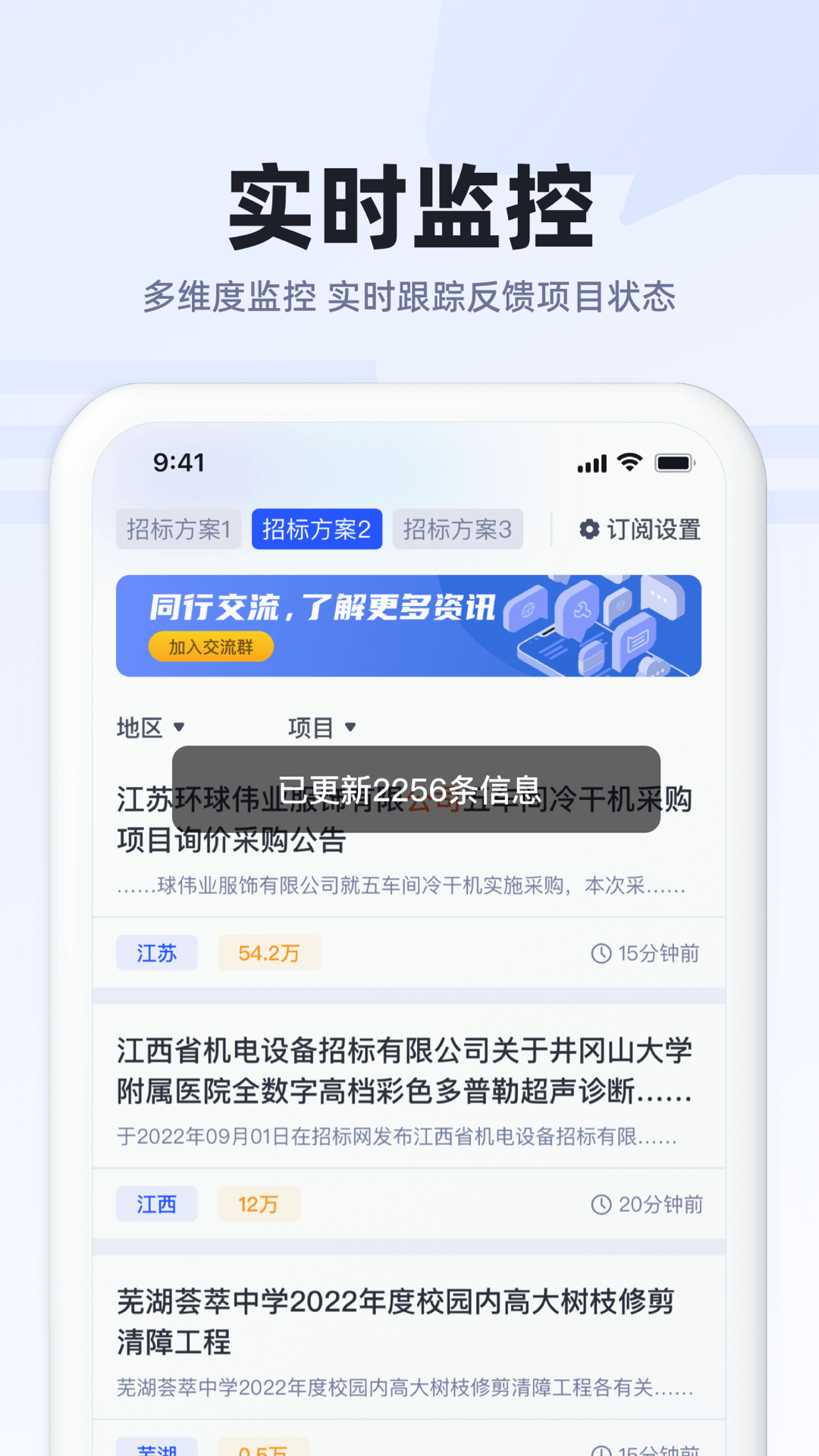 3、**实时监控与提醒**:通过多维度监控系统,用户可追踪项目状态变化(如开标时间调整、中标公示),并设置智能提醒功能。例如,某建筑企业订阅“北京市绿化工程”后,系统在开标前48小时自动推送提醒,确保用户不错过关键节点。