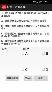 1、**多维度检测体系**:应用以20道题为一组进行阶段性测试,精准量化学生的做题准确率(分为极高、很高、比较高等7个等级)、做题速度(极快、很快、比较快等7个等级)、看懂率及看懂速度。例如,系统会反馈“基因表达载体的构建题准确率很高”“PCR技术的原理题看懂速度极快”,帮助学生快速定位知识盲区。